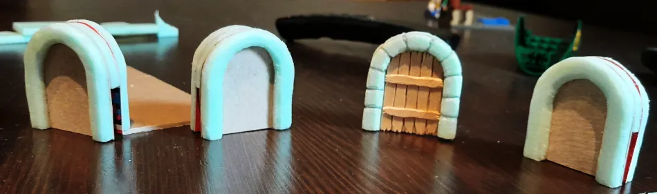 Hier auf dem Coverbild seht ihr ein paar der allerersten Türen, die wir für unser zusammensteckbares Verließkachelsystem gebaut haben. Wir wollen euch jetzt zeigen wie wir das gemacht haben.