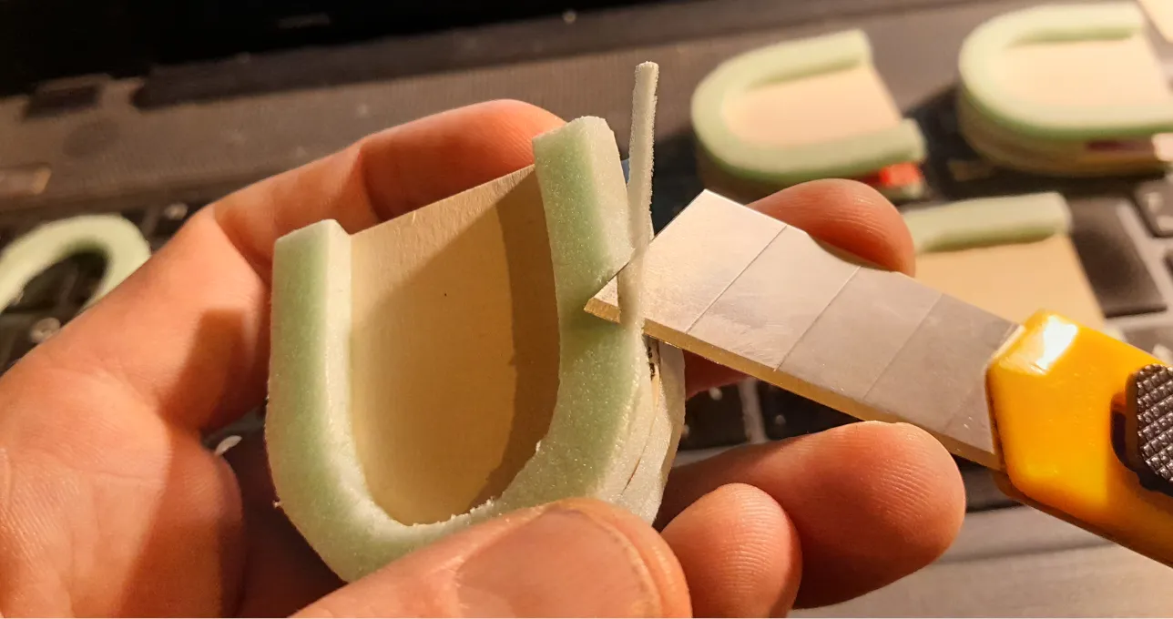 Vielleicht der einfachste Weg, das zu konstruieren, ist die ganze Türform auszuschneiden, und dann mit einem Geodreieck von der unteren Kante her 20mm parallel nach oben zu verschieben - und die Form dort abzuschneiden. Bisschen mühsam, aber notwendig für eine gute Passform am Ende dann.Die gute Nachricht ist allerdings, dass man es nur einmal machen muss: Wenn ihr es aus dem Karton zuerst konstruierts, dann könnt ihr es nämlich auf das XPS wiederum einfach abpausen.